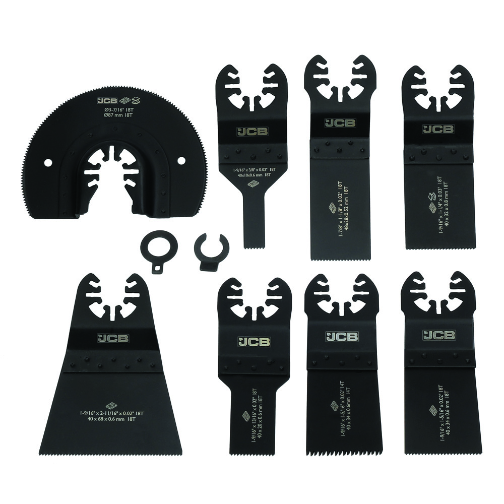 Entdecken Sie die Leistung des 8-teiligen Multitool-Messer-Sets JCB-PTA-MT8 von JCB Tools, das Ihre Schneidanforderungen mit Präzision und Leichtigkeit erfüllt. Diese Klingen aus gehärtetem Stahl passen universell auf Multitools der meisten Marken und sind sowohl mit kabelgebundenen als auch kabellosen Modellen kompatibel.