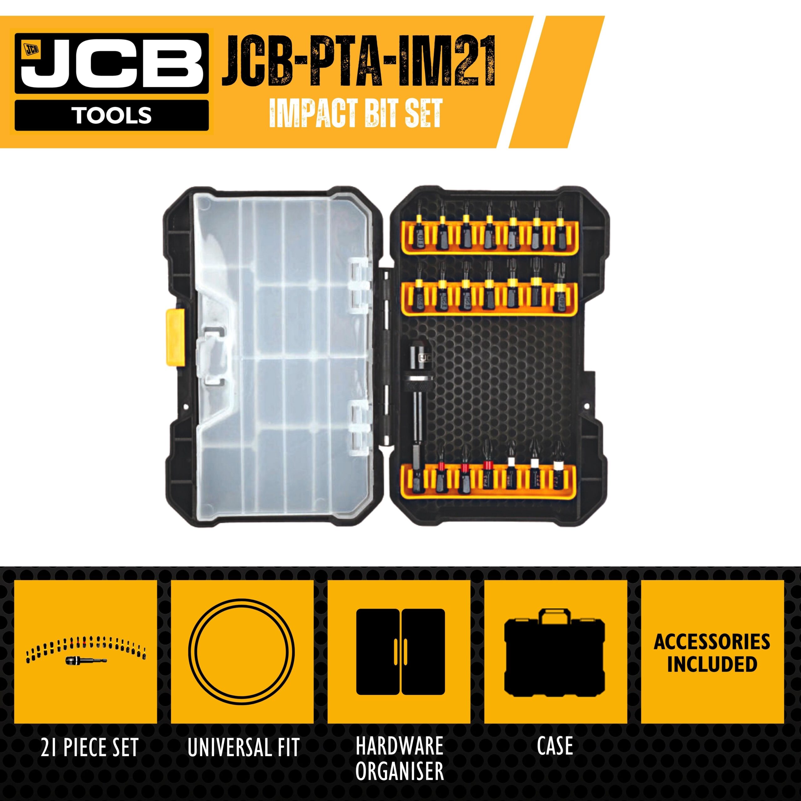 JCB 21-delige slagbitset in opvouwbare koffer met hardware-organiser.